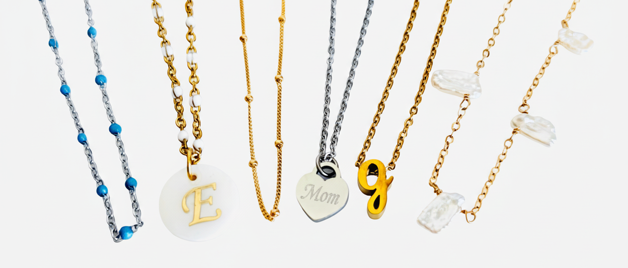 Shop NecklacesExplore our collection of minimalist, personalized, birthstone, and pearl necklaces crafted for effortless elegance. From custom name necklaces to meaningful birthstone pendants, each piece is designed for everyday wear or thoughtful gifting. Layer delicate chains or choose a statement style to create a look that’s uniquely yours.